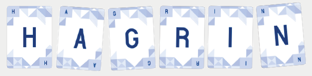 Cristal doesn’t have a C, and can’t think of anything else so she picks up HAGRIN and puts them in fer face down, negative pile, much to her chagrin.